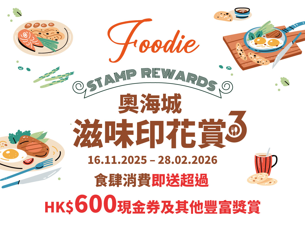 > With 50 stamps, redeem Hong Kong Gold Coast Hotel HK$500 dining and hotel voucher (Expiry date: 30 June 2026)