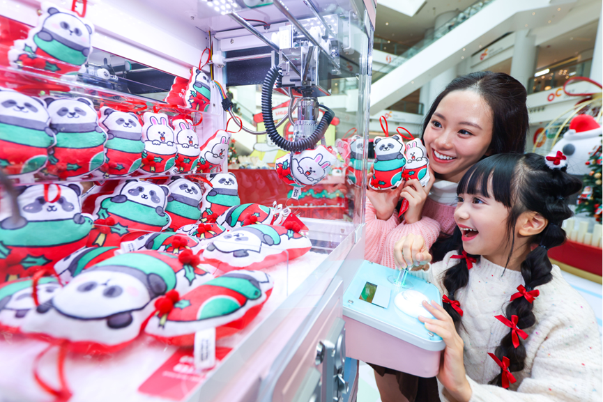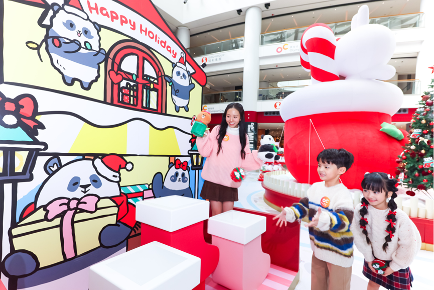 体验一:Panda Friends FUN享礼物大作战 → 将色彩缤纷的礼物准确投入巨型圣诞袜中