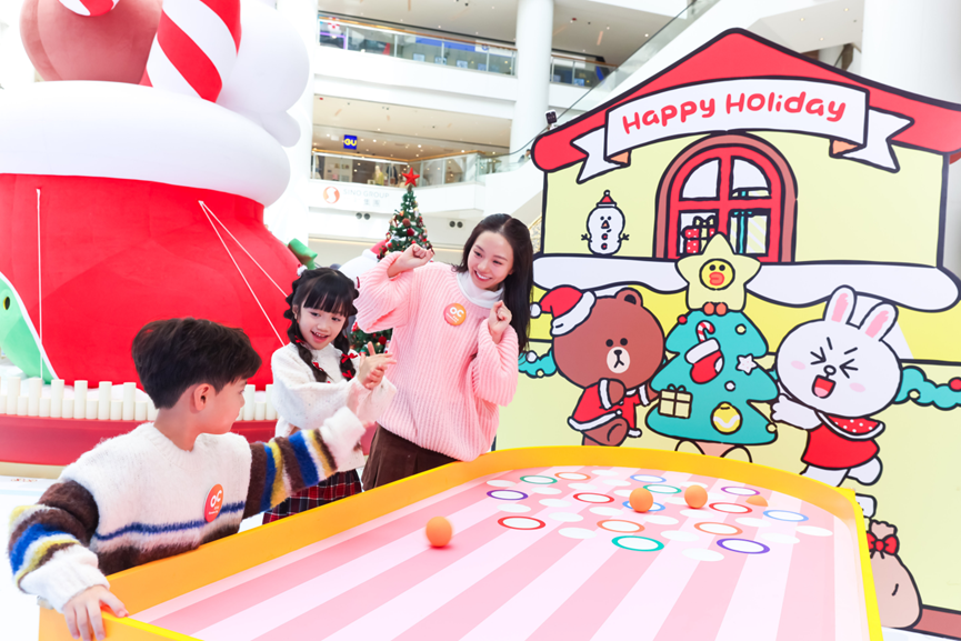 体验二:LINE FRIENDS雪球派礼挑战站 → 考验参加者的手眼协调,将雪球滚进色彩缤纷的洞口