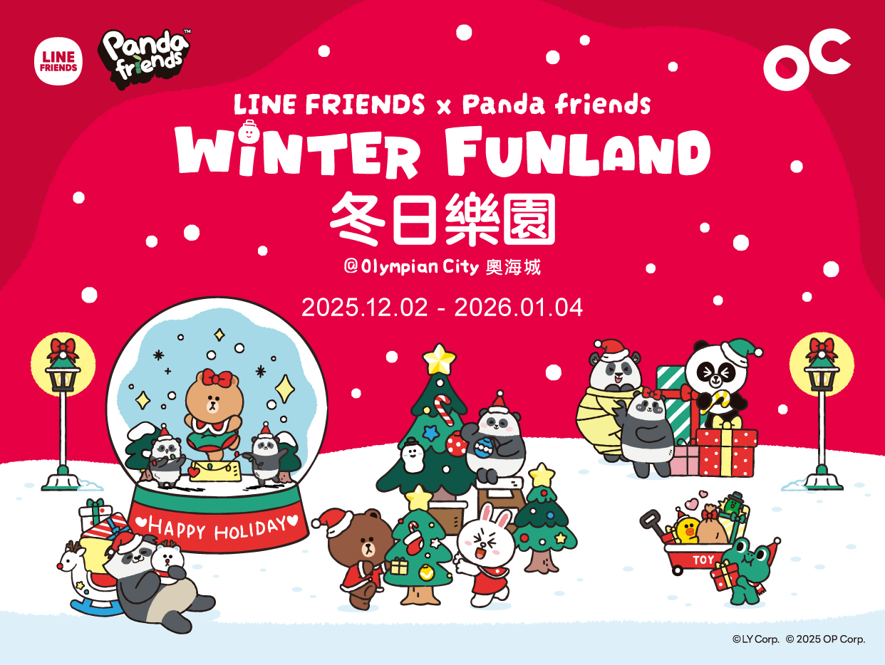 今个冬日,奥海城携手IPX及香港海洋公园打造全球首个《LINE FRIENDS x Panda Friends Winter Funland冬日乐园》,深受全球喜爱的超人气 LINE FRIENDS 朋友仔与萌爆 Panda Friends 好友,已经换上闪亮冬日限定新装,准备好带领大家进入好玩满FUN的冬日乐园!
