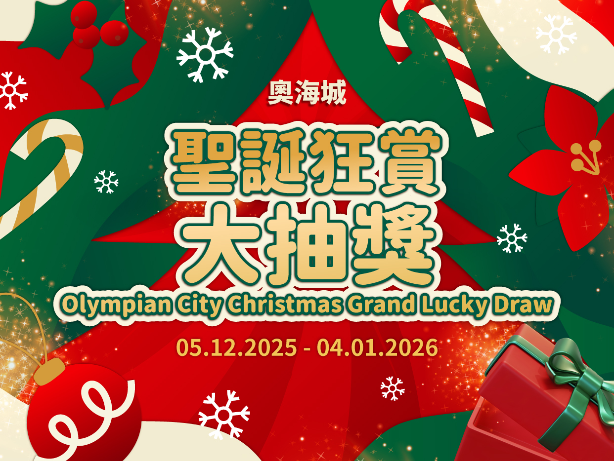 1會員必須於2026年1月4日或之前於S+ REWARDS手機應用程式「奧海城聖誕狂賞大抽獎」活動頁面按下「參加」按鈕及於奧海城消費。會員於合資格單一消費只限賺取1次抽獎機會,而於整個活動期內則可賺取最多15次抽獎機會。