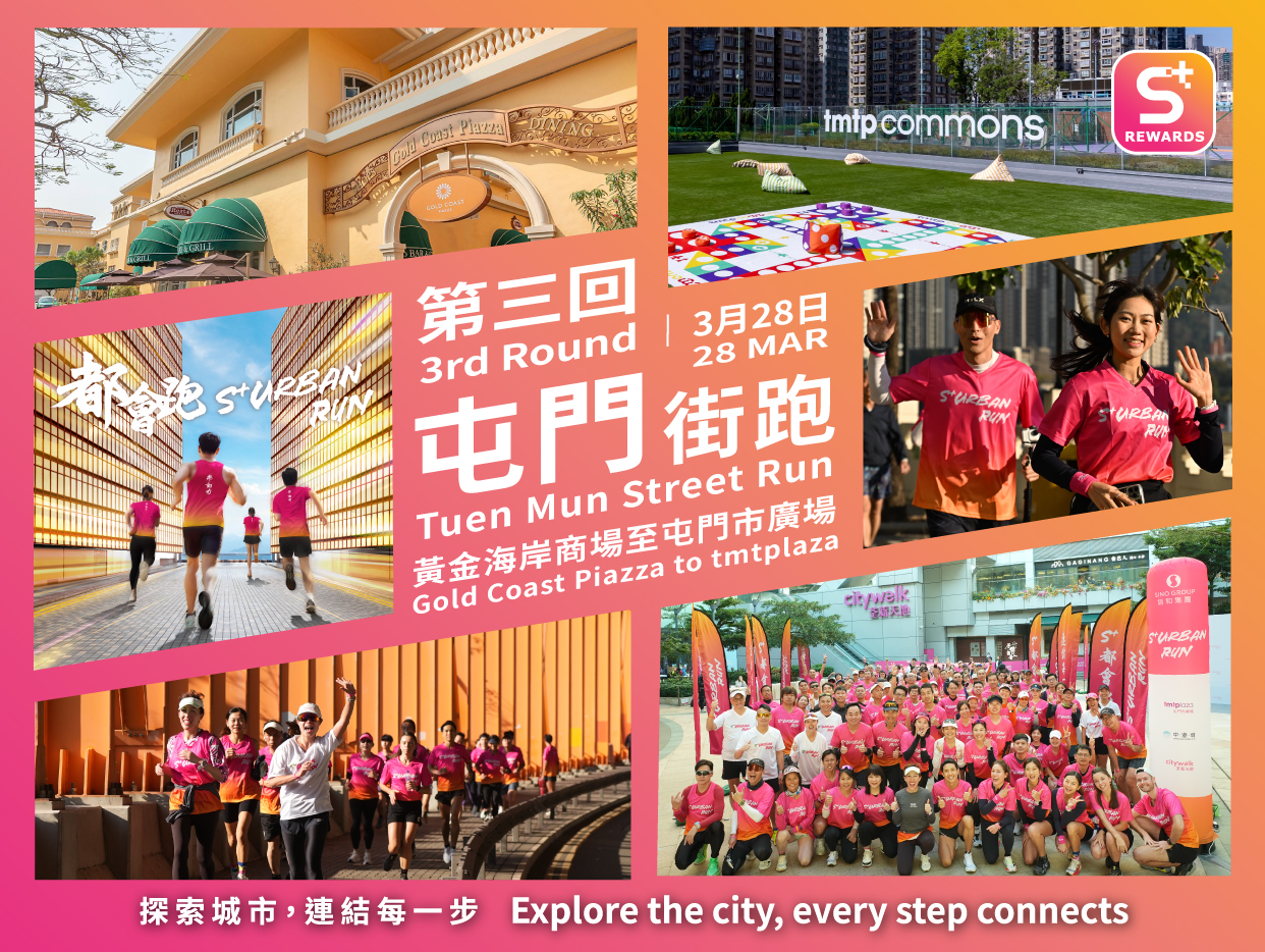 為慶祝「S⁺ 都會跑」正式啟動,我們特別設計了五條獨特街跑路線,分別由五大信和集團旗艦商場出發:屯門市廣場、奧海城、荃新天地、中港城及朗壹廣場。每條路線均以社區探索為主題,讓參加者更深入了解周邊地區。無論你是資深跑者或剛起步的新手,「S⁺ 都會跑」都是你挑戰自我、結識同好、並投入都市跑步文化的理想平台。